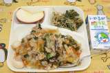鶏肉と野菜のケチャップ煮 ほうれん草のグラタン みかん レーズンパン 牛...