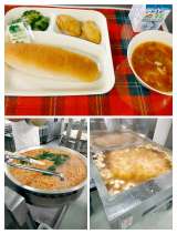 白身魚フリッター ミネストローネ ブロッコリーのサラダ ソフトマーガリン コッペ...