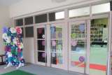 新しくなった講堂に、子どもたちの個性豊かな力作が並んでいます。 写真:上から...
