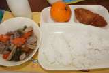 まぐろのフライ 豚肉とだいこんの煮もの みかん ごはん 牛乳