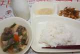 鶏肉と野菜の煮もの じゃこ豆 かぶのゆず風味 ごはん 牛乳
