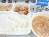 鶏肉の甘辛焼き みそ汁 だいこんの煮もの ご飯 牛乳