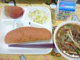 カレーうどん はくさいの甘酢あえ りんご 大型コッペパン ソフトマーガリン 牛乳...