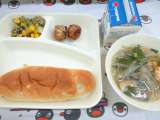あげシューマイ とうふのスープ ツナとチンゲンサイのいためもの おさつパン 牛乳...