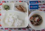 きびなごてんぷら、あつあげと野菜の煮もの、きゅうりの甘酢づけ、ごはん、牛乳