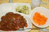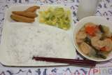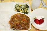 ポークカレーライス きゅうりとコーンのサラダ いちご 米飯 牛乳 今日...