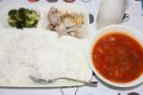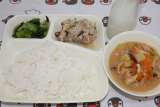 鶏肉とチーズのカラフル焼き 野菜のミネストローネ ブロッコリーのサラダ 米...