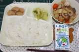 鶏ごぼうご飯 干しずいきのみそ汁 焼きれんこん 米飯 牛乳