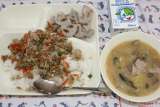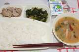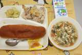 中華おこわ 卵スープ キャベツのオイスターソースいため 大型コッペパン ...