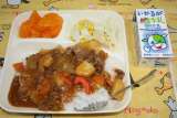 ポークカレーライス グリーンサラダ 洋なし(缶) 米飯 牛乳