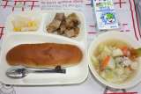 牛肉のデミグラスソース煮 コーンスープ かぼちゃのプリン おさつパン 牛...