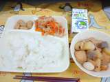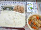 鶏肉のからあげ まる天と野菜のうま煮 焼きのり ご飯 牛乳