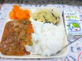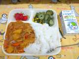 ポークカレーライス きゅうりとコーンのサラダ いちご 牛乳