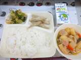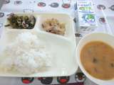 鶏肉のゆず塩焼き さつまいものみそ汁 こまつなの煮びたし ご飯 牛乳