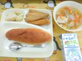 ほうれんそうのクリームシチュー キャベツのサラダ 洋なし(カット缶) 大型コッペ...