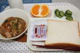 みそきしめん あっさりきゅうり 清見オレンジ 食パン いちごジャム 牛乳