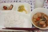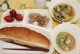 ピリからあげ 中華スープ ほたて貝と野菜のいためもの いちご レーズンパ...