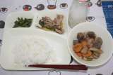肉じゃが はくさいのゆず風味 とら豆の煮もの ごはん 牛乳