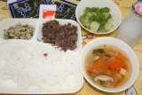 今日は卒業お祝い献立です。 手巻きご飯(牛肉の甘辛煮、ツナソテー) すまし汁...