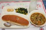 豚肉と野菜のカレー煮 ほうれん草のソテー あげポテトもち レーズンパン ...