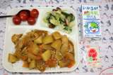 鶏肉のチリソース焼き 中華煮 きゅうりの中華あえ 米飯 牛乳