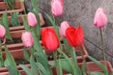 玄関前のチューリップが咲きそろいました。 講堂前にある2種類のサクラが咲き始め...