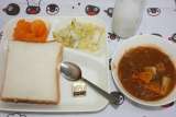 ビーフシチュー キャベツのピクルス みかん(缶) 食パン バター 牛乳...