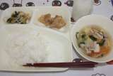 鶏肉のからあげ 中華スープ チンゲンサイともやしの甘酢あえ 米飯 牛乳