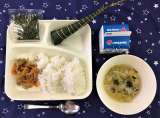 きんぴらちらし、すまし汁、ちまき、牛乳