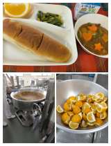 煮込みハンバーグ 野菜スープ ミニフィッシュ コッペパン ブルーベリージャム 牛...