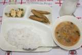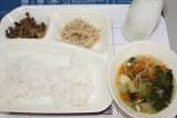 プルコギ とうふのスープ 甘酢あえ ごはん 牛乳