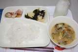 赤魚のしょうゆだれかけ みそ汁 わかたけ煮 ごはん 牛乳
