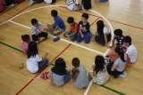 児童集会がありました。 新聞紙を島に見立てて、班の全員がその上に乗ることができ...