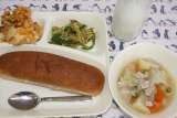 かぼちゃのクリームシチュー ミックス海そうのサラダ オレンジ ライ麦パン ...