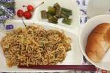 焼きそば オクラの中華あえ さくらんぼ 黒糖パン 牛乳 デザートに季節...