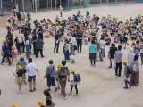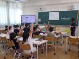 写真上から 3年 算数 習熟度別少人数学習をしています。 グーの手を挙げてい...