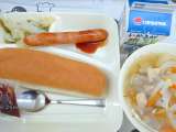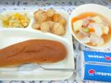 ウインナーのケチャップソース スープ キャベツとさんどまめのサラダ 大型コッペパ...
