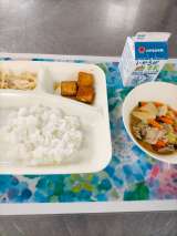 中華煮 あつあげのピリ辛じょうゆかけ もやしの中華あえ ごはん 牛乳