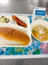ウインナーのケチャップソース スープ キャベツとさんどまめのサラダ 黒糖パン 牛...