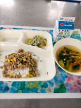 3食丼 3食スープ 3食酢の物 ごはん 牛乳