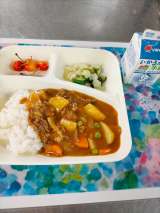 ハヤシライス ミックス海そうのサラダ さくらんぼ 牛乳