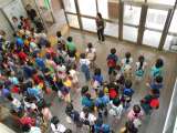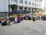 宿に戻り避難訓練です。 初めての施設、緊急時に備え真剣に取り組みました。
