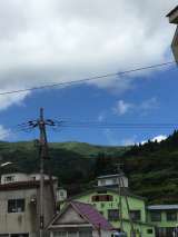 宿舎に到着しました。 現地の天候は晴れ、宿舎の前から高丸山の稜線がはっきりと見...