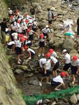 宿舎から八木川まで下り、魚つかみです。 山からの水は冷たく、足を入れると歓声が...