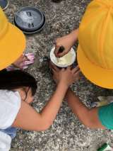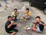 最後の行事、アイスクリーム作りです。 材料と氷、塩を容器に入れて、完成まで転が...