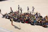 無事、宿舎に戻りました。 仲良く並んでスイカタイムです。