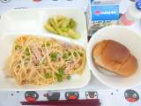 ポークトマトスパゲッティ グリーンアスパラガスのサラダ 発酵乳 黒糖パン 1/2...