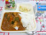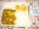 チキンカレーライス フルーツ白玉" 牛乳
