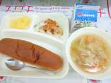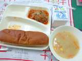 豚肉のカレー風味焼き ミネストローネ ミックスフルーツ(缶) 大型コッペパン い...