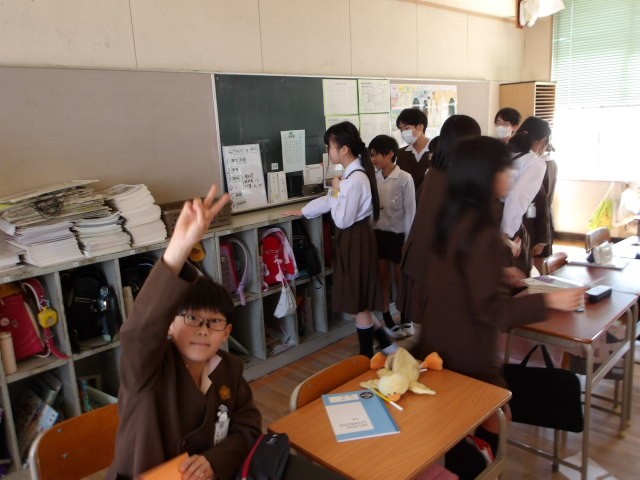 朝は風が吹くものの陽射しがあったのですが、少しずつ曇が出てきました。夕方には曇り空、夜には雨が降るとのことで、花粉も少しは落ち着くのかもしれませんね。開けると寒いようで、窓を閉め切っている教室が多いのですが、中に入ると暖かくて、児童の皆さんのエネルギーをこんなところにも感じてしまいます。授業の終了間際ですが、どのクラスもしっかりと学習に取り組んでいます。また、6年生の皆さんは英語の授業で最後のスピーキングテストということで、C-NETの先生から「英語で」お話をしてもらっています。全部は聞き取れなくても、ある程度の内容を理解している人が多いようで、すごいなぁと感心してしまいます。いいね~!